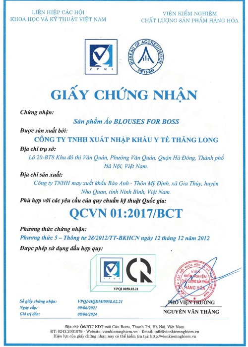 Blouse For Boss- Mặc Đẹp Đến Thành Công tự hào là thương hiệu đồng phục y tế cao cấp Made in Việt Nam đã được đăng ký bởi Viện Kiểm Nghiệm Chất Lượng Sản Phẩm Hàng Hóa, với thương hiệu được thành lập bởi công ty TNHH Xuất Nhập Khẩu Y Tế Thăng Long với hơn 10 năm kinh nghiệm về lĩnh vực y tế. Là một trong những công ty có tiếng về nhập khẩu máy móc cũng như vật tư của ngành y.